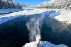 Выезд на экскурсию - группу ожидает пешая прогулка на легендарные Голубые озера - глаза Катуни, которые открываются гостям Алтая со второй половины сентября по начало весны, где устраиваем небольшой пикник. Озера находится на левом берегу реки Катунь в 4 км села Аскат. Зимой в этом месте Катунь не замерзает, так как Голубые озера локализованы и подпитываются родниками. Чистейшая вода позволяет рассмотреть дно озер и катунских обитателей.