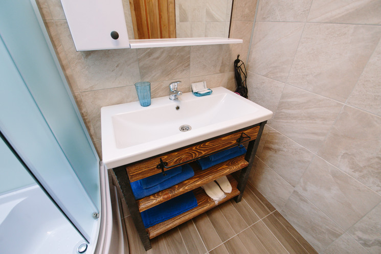 1 | 2-спальная, 1,5-спальная | прикроватные тумбочки, шкаф, стол-тумба, стулья, мини-холодильник, чайник, телевизор | есть, разделен на 2 зоны, оборудован мебелью | туалет, умывальник, душевая кабина | за счет 1,5-спальной кровати |