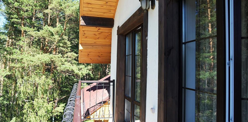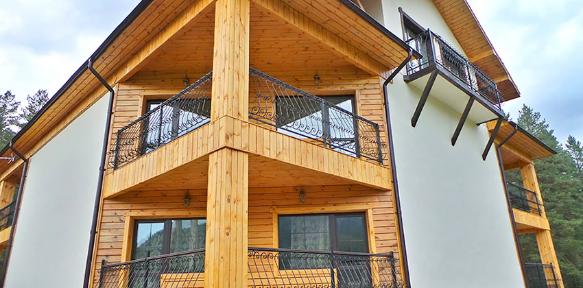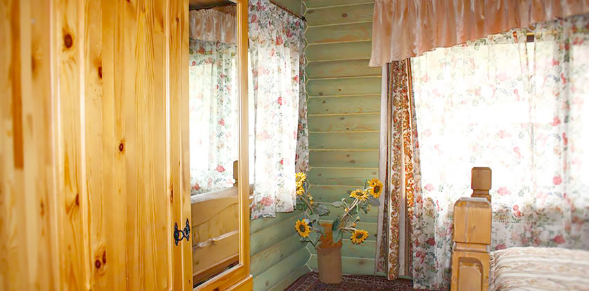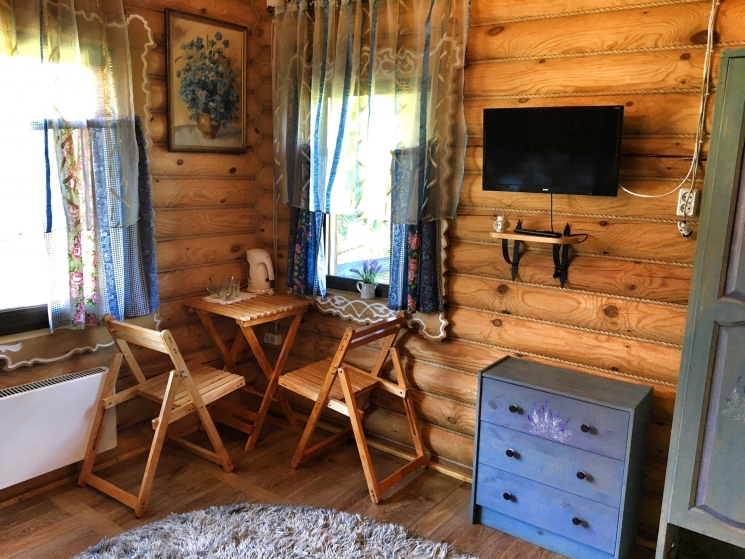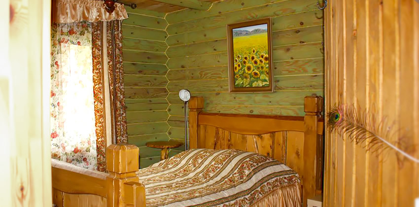 деревянный дом из бруса, в каждом доме 2 номера (1 номер БД2 и 1 номер БД3) все номера выполнены в разных стилях: «Охотничий», «Лаванда», «Морской», «Подсолнух» |