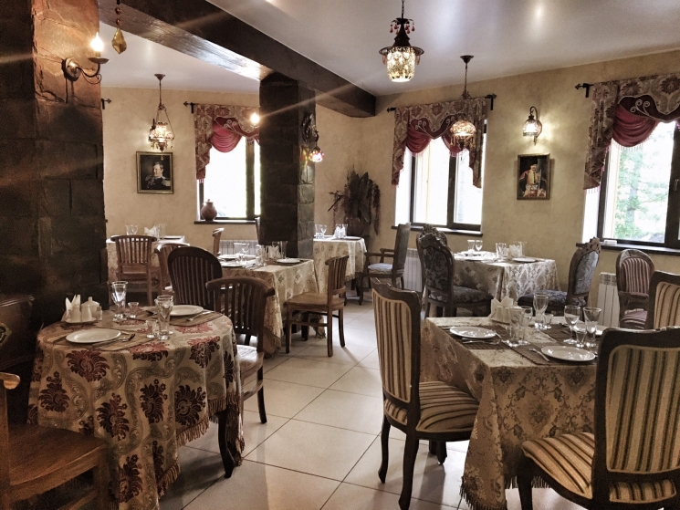 ресторан (45 посадочных мест): находится в отдельном корпусе, заказное меню, комплексное питание, диетические блюда, вегетарианские блюда, детское меню, доставка еды в номера