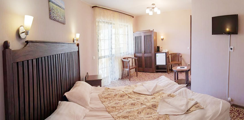 1 | 2-спальная | тумбочка, шкаф для одежды, столик, стул, холодильник, чайник, чай, кофе, вода | есть | туалет, умывальник, душевая кабина, халаты, тапочки, фен | раскладная кровать | |