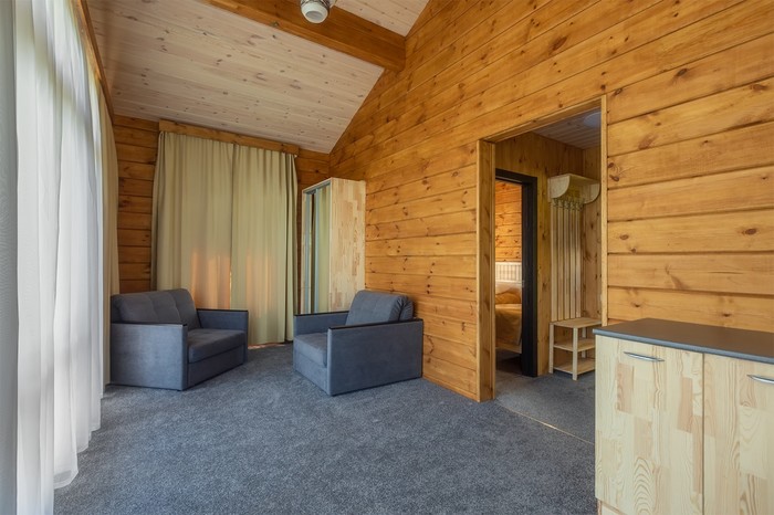 номера с удобствами на блок (К2, К3) отдельностоящие благоустроенные коттеджи с террасой (ПЛ) |