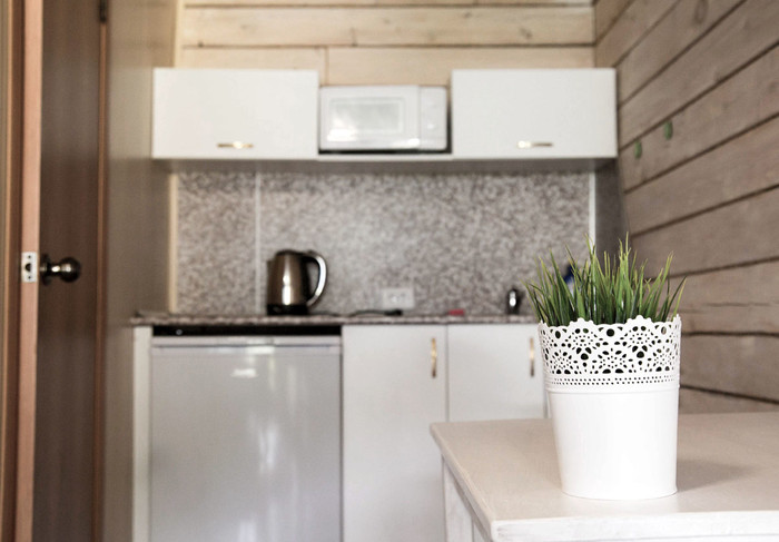 21 кв.м, вешалка для одежды, тумбочка, полка для обуви, зеркало, сейф, консоль, телевизор, кухонная зона (холодильник, чайник, микроволновая печь, набор посуды), мультиварка (по запросу у администратора), обеденная зона (стол, 2 стула)