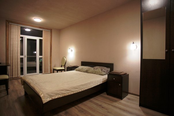 1 2-спальная 25 м2, шкаф, трюмо, чайный столик, телевизор, холодильник, чайник, набор посуды, обогреватель туалет, умывальник, душевая кабина кресло-кровать