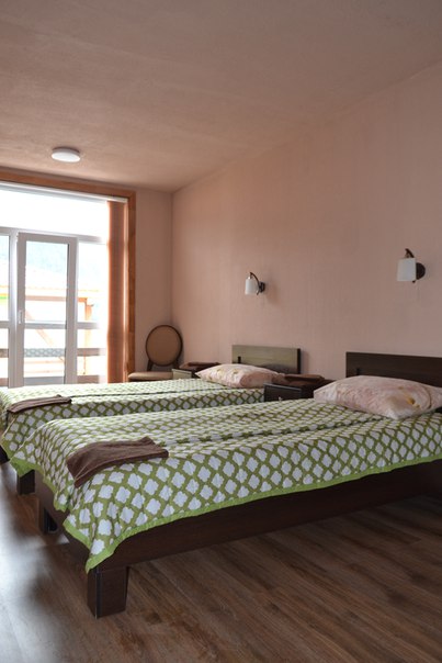 2 этаж четыре спальные комнаты: в каждой 2-спальная кровать, телевизор, чайник, набор посуды