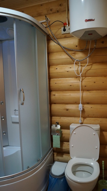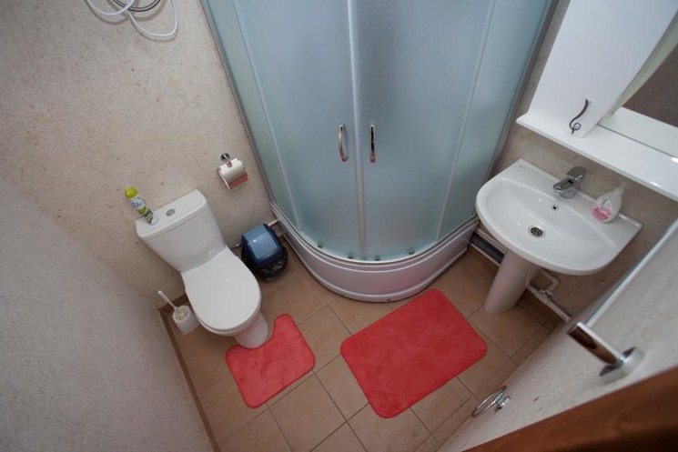два санузла: в каждом туалет, умывальник, душевая кабина