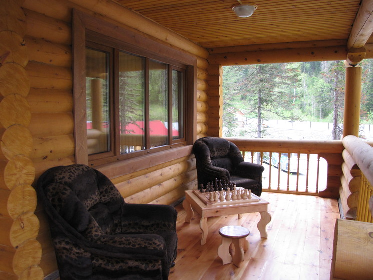 отдельностоящий домик из бруса с панорамными окнами и балконом (вид на озеро)