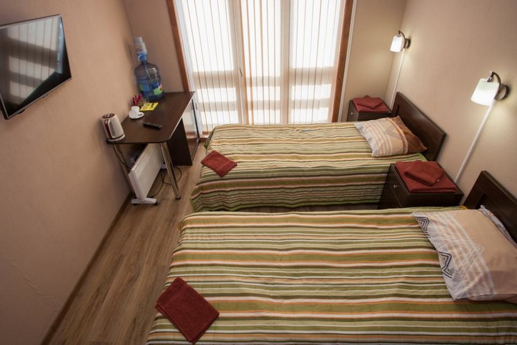 комната №1: две 1-спальные кровати, телевизор, чайник, набор посуды, холодильник