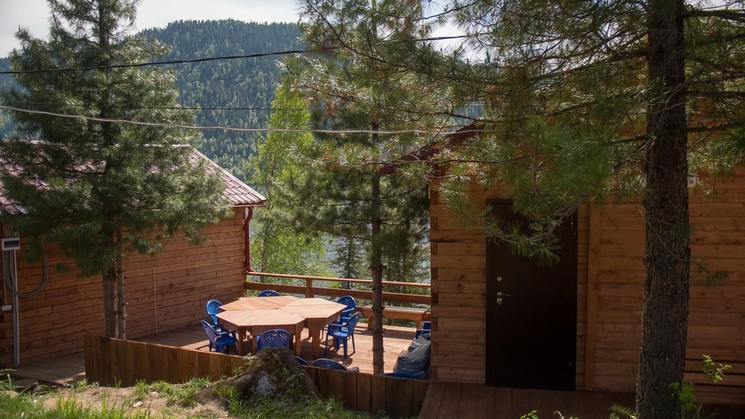 большая территория на берегу Телецкого озера вдали от других турбаз, в номерном фонде есть отдельные коттеджи для компаний и больших семей
