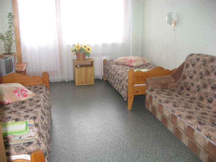 шкаф, тумбочки, столик, табуреты, телевизор; в общем холле: холодильник, телевизор, муз. центр, детская игровая зона | лоджия | туалет, умывальник, душ - на этаже (4 санузла с душем на 7 номеров) | нет | |