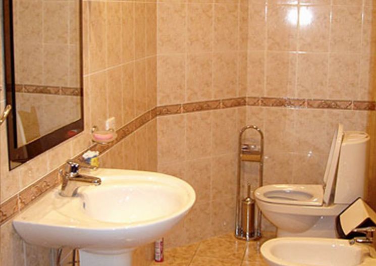 на первом этаже: большой холл с витражами, диван, оборудованная кухня (холодильник, плита, микроволновая печь, эл. чайник, набор посуды), обеденная зона, пул, муз. центр, телевизор (спутн. ТВ), DVD; на втором этаже: три спальные комнаты, 3 шкафа, тумбочки