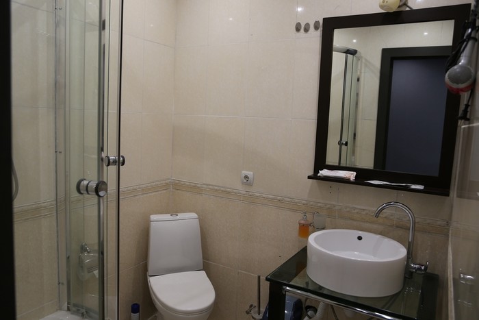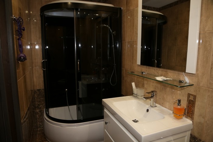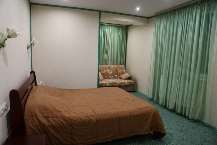 1 | 2-спальная | 27 м2, витражное окно, прихожая, тумбочки, диван, стол, стул, журнальный столик, шкаф, чайник, телевизор, холодильник | да | туалет, умывальник, душевая кабина, фен, халаты | диван |