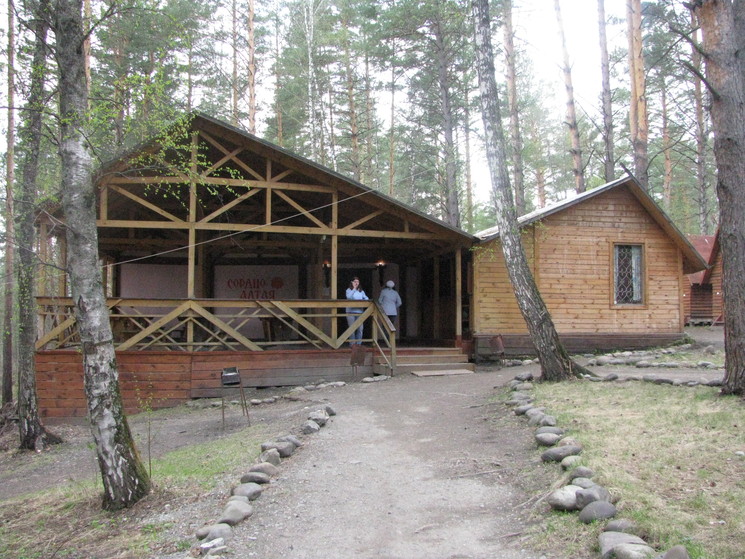 тихое место на берегу Катуни вблизи шумного района озера Ая, выгодные условия по размещению детей, в летний период времени - открытый бассейн, на базе предствлены благоустроенные и частично благоустроенные номера, проводятся акции "Счастливая неделя" (май, июнь)