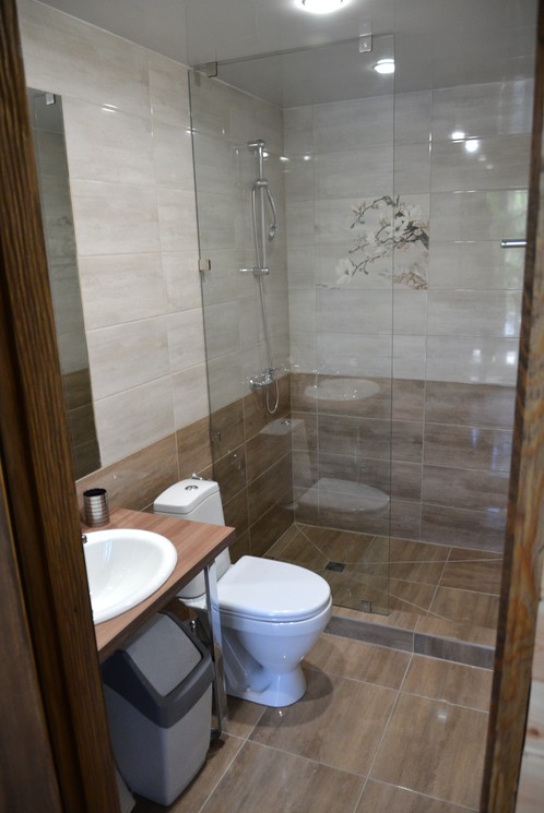 База оставляет желать лучшего. В номом душе, вода чуть теплая, в старом вода нормальная, но за трое суток пока мы были его никто не ни разу не убрал. Ведра для мусора в душе нет. В номерах категории ПБ хотелось бы побольше обыкновенных крючков и полочек (даже в туалете некуда положить зубную пасту и мыло). Администраторы работают безобразно, дали ключи и идите ищите, никто ничего не объясняет. А номера для разных категорий одинаковые. Вообщем оценка 3-. В кафе кормят нормально.