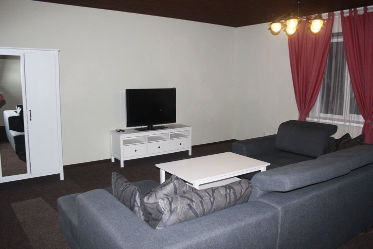 номер-студия тумбочки, 2-спальный диван, журнальный столик, стулья, шкаф, телевизор, холодильник, чайник