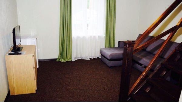 2-уровневый номер гостиная (1 этаж): диван, комод, шкаф, журнальный столик, стулья, телевизор спальная комната (2 этаж) 2-спальная